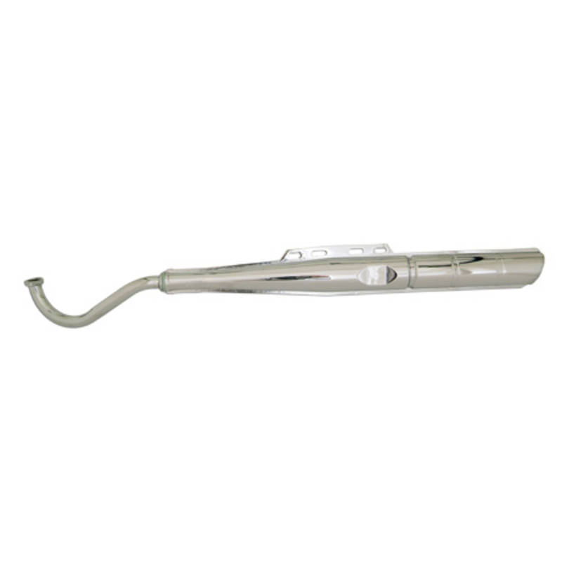 2-Teiliger Auspuff wie original. 22mm Krümmerdurchmesser, Optik gleich wie original. Chromfinish.
