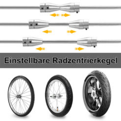 Durch das Rad-Aufnahmesystem mit konischen Klemmkörpern können alle Nabentypen bzw. Radlagerdurchmesser eingespannt werden.