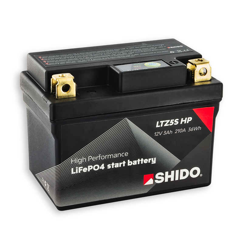 Die schwarze Lithium-Hochleistungsbatterie (HP) für Motorräder verfügt bei gleicher Größe über eine viel höhere Kapazität und Startleistung als die Standard-Lithium-Ionen-Batterie. Diese Startleistung sorgt für einen kraftvollen und schnellen Start des Motors.