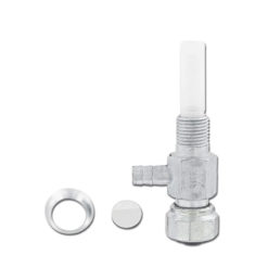 Dieser Benzinhahn aus Aluminium inkl. Filter wird durch Drehen geöffnet bzw. geschlossen.