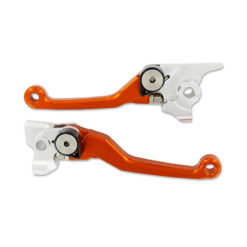 Moderne, klappbare und CNC gefertigte Aluminium Brems-/Kupplungshebelset farblos und orange eloxiert.
