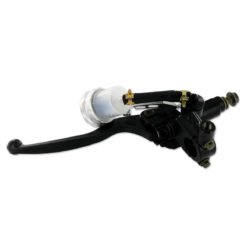 Komplette Handbremspumpe mit radial angeordnetem Zylinder. Sie wird komplett mit Bremshebel, Expansionsgefäss und Bremslichtschalter geliefert.