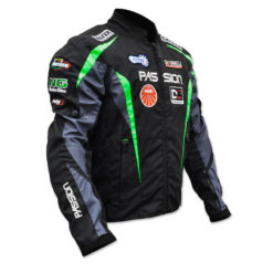 Bequeme Sommer Motorrad-Jacke mit einem atmungsaktiven Netzinnenfutter, weitenverstellbar an Taille und Ärmel. Die Jacke verfügt jeweils über eine Aussentasche links und rechts sowie einer Innentasche mit Reissverschluss.