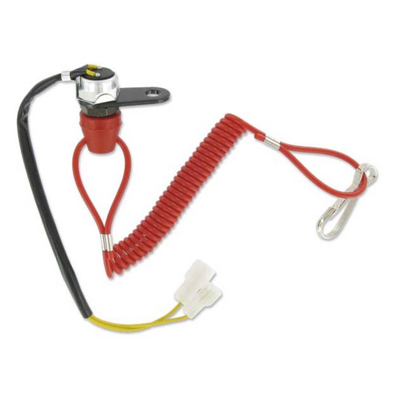 Killswitch mit Reissleine wie man ihn aus dem Rennsport oder von Sea-Doos kennt. Bei einem Sturz wird das Seil aus dem Kontakt gezogen und unterbricht die Zündung. Kann natürlich, geschickt platziert, auch als Wegfahrsperre dienen.