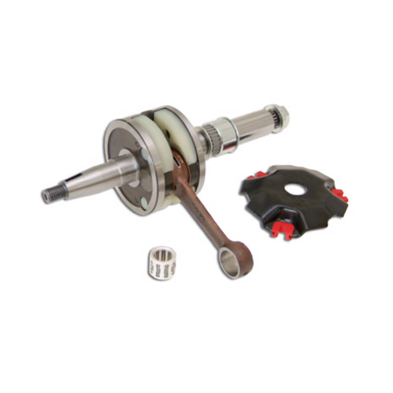 Hochwertige Racingwelle von Hebo. Silberlager, Messinganlaufscheiben und Schmierbohrungen im Pleuel sind selbstverständlich für eine Kurbelwelle die Drehzahlen bis 16000 U/min aushält. Die Vorverdichtung wird durch Einsätze aus Kunststoff erhöht.