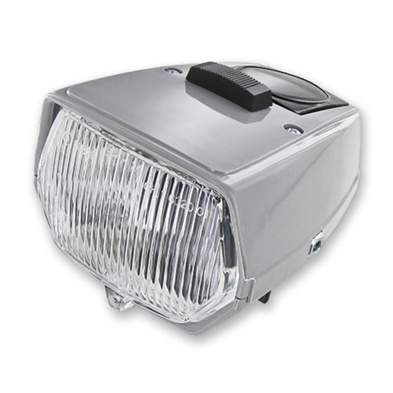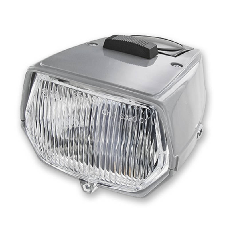 Frontlampe grau (4-eckig) mit 1 Phase (P26s-Sockel).
