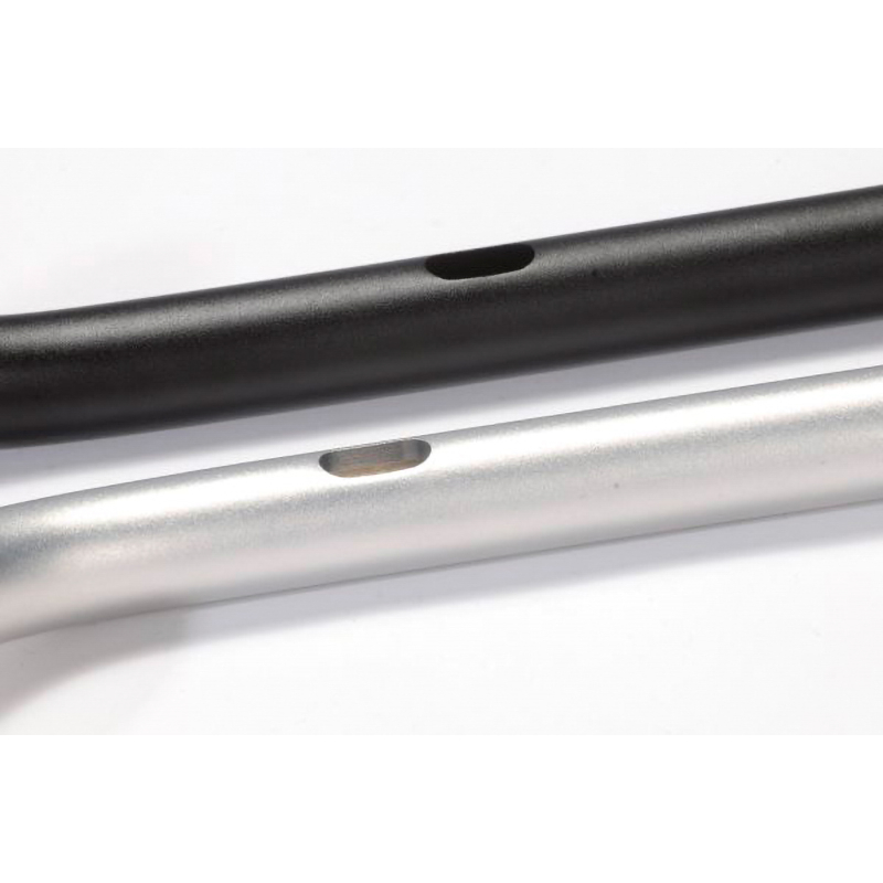 Der universal einsetzbare Lenker besticht durch geringes Gewicht und hohe Stabilität. Außen beträgt die Wandstärke 4 mm, zum Klemmbereich hin nimmt sie zu. Dadurch erreichen die Modelle eine Steifigkeit, die konventionellen Stahllenkern ebenbürtig ist. Mit Homologation.