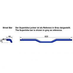BLAU-eloxierter, hochglänzend-polierter Lenker aus Aluminium mit einem Außendurchmesser von 22,2 mm. Für alle Streetfigther- und Naked Bike-Umbauten. Der universal einsetzbare Lenker gibt dem Biker die fightertypische Sitzposition und verbessert das Handling der Maschine. Mit Homologation.