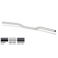 Eloxierter, perlgestrahlter Lenker aus Aluminium mit einem Außendurchmesser von 25,4 mm. Für alle Streetfigther- und Naked Bike-Umbauten geeignet. Der universal einsetzbare Lenker besticht durch geringes Gewicht und hohe Stabilität. Außen beträgt die Wandstärke 4 mm, zum Klemmbereich hin nimmt sie zu. Dadurch erreichen die Modelle eine Steifigkeit, die konventionellen Stahllenkern ebenbürtig ist. Mit Homologation.