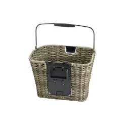 Geflochtener Lenkerkorb mit modischen, wetterfesten Kunststoffbändern in schmaler Ausführung. Hochwertige Verarbeitung mit elegantem Bügelgelenk und Tragegriff. Mit höhenverstellbarer Adapterplatte für den KlickFix Lenkeradapter.