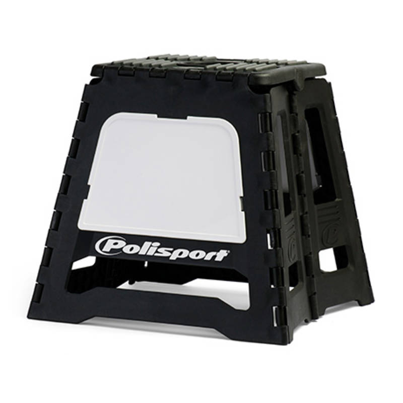 Dieser moderne, stabile Cross-Motorradständer von Polisport ist in wenigen Sekunden aufgestellt bzw. zusammengelegt. Dadurch findet er selbst in der kleinsten Nische platz beim Transportieren.