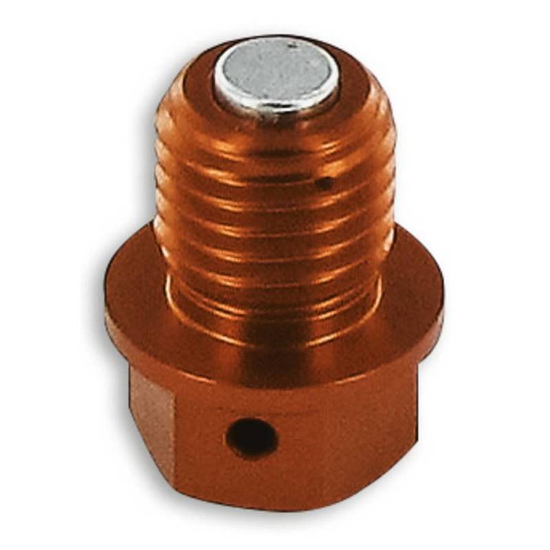 Edle Motorenöl-Ablassschraube aus eloxiertem Aluminium von ZETA mit extra starkem Magnet, welcher allfällige Späne im Kurbelgehäuse anzieht und somit ein spanfreies Laufen vom Getriebe gewährleistet.