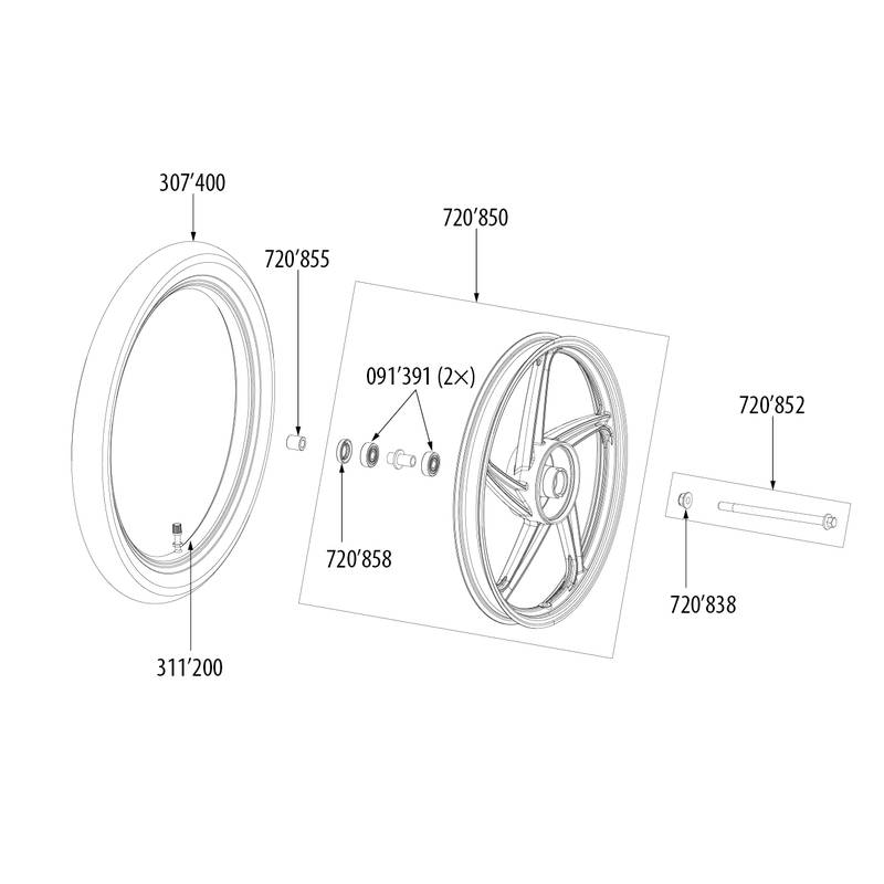 Achse vorne Piaggio Vespa 50, 90, 100, 125, PK 50, Primavera/ET3 125cc