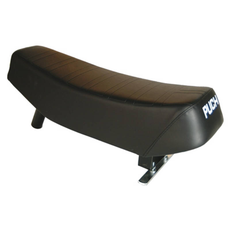 Langer Doppelsattel mit weissem „PUCH“ Schriftzug.