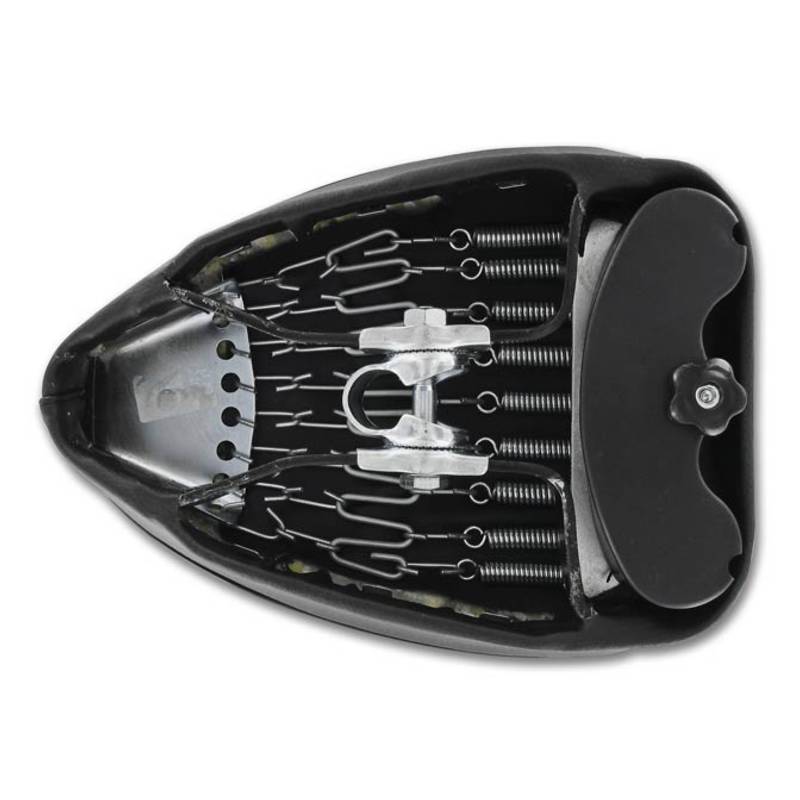Der klassische Puch Maxi Sattel mit Feder-Grundplatte und Werkzeugbox.