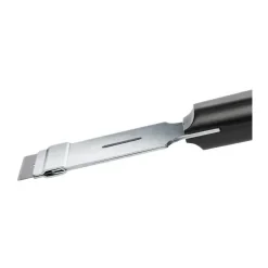 Die extra gehärtete, beidseitig geschliffenemit 0.3 mm starker, auswechselbarer Klinge entfernt selbst hartnäckige Rückstände, ohne empfindliche Oberflächen zu beschädigen.