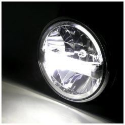HIGHSIDER 7 Zoll LED-Scheinwerfer BRITISH-STYLE TYP 4 mit Tagfahrlicht, mit verchromtem Metallgehäuse und Einsatz, klares Glas, rund, seitliche Befestigung, E-geprüft.