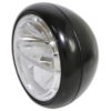 Puristisch geformter Hauptscheinwerfer mit verchromtem Metallgehäuse zur seitlichen Befestigung. Das schlichte Design passt ideal zu Klassikern, Roadstern und Customized Bikes.