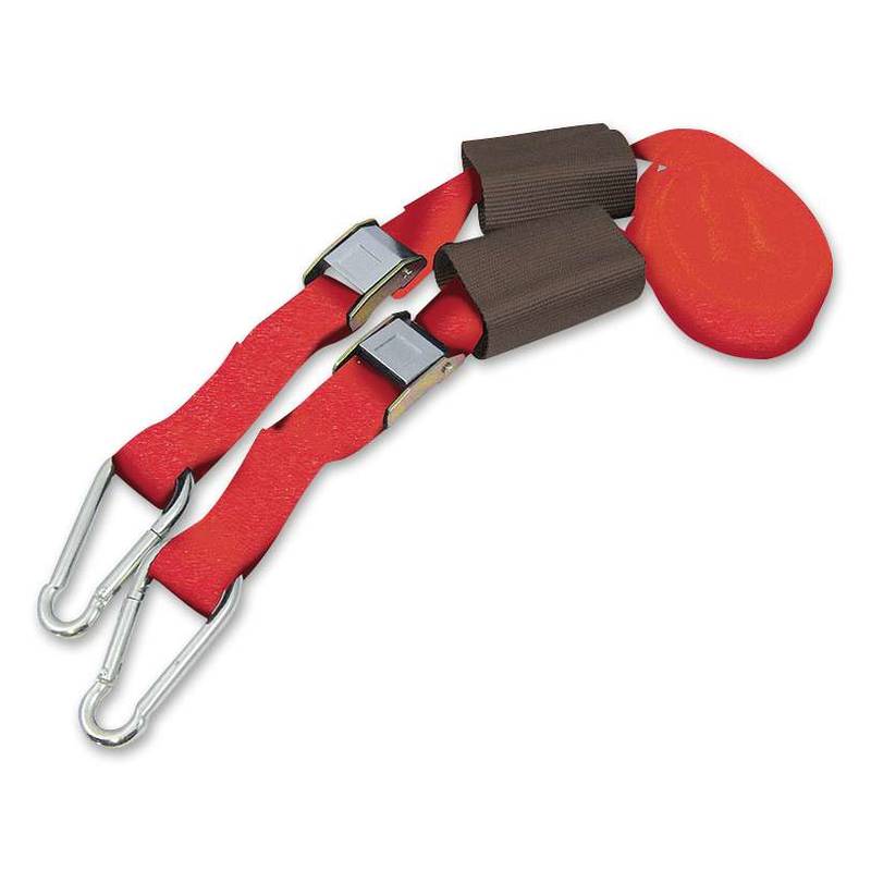 Sehr starker Spanngurt mit Lenkerlaschen um Motorräder und Roller auf dem Fahrzeug zu sichern. Die Enden sind mit Karabinerhaken versehen. Eine zusätzliche Hülle zwischen den Lenkerlaschen verhindert Kratzer am Motorrad.