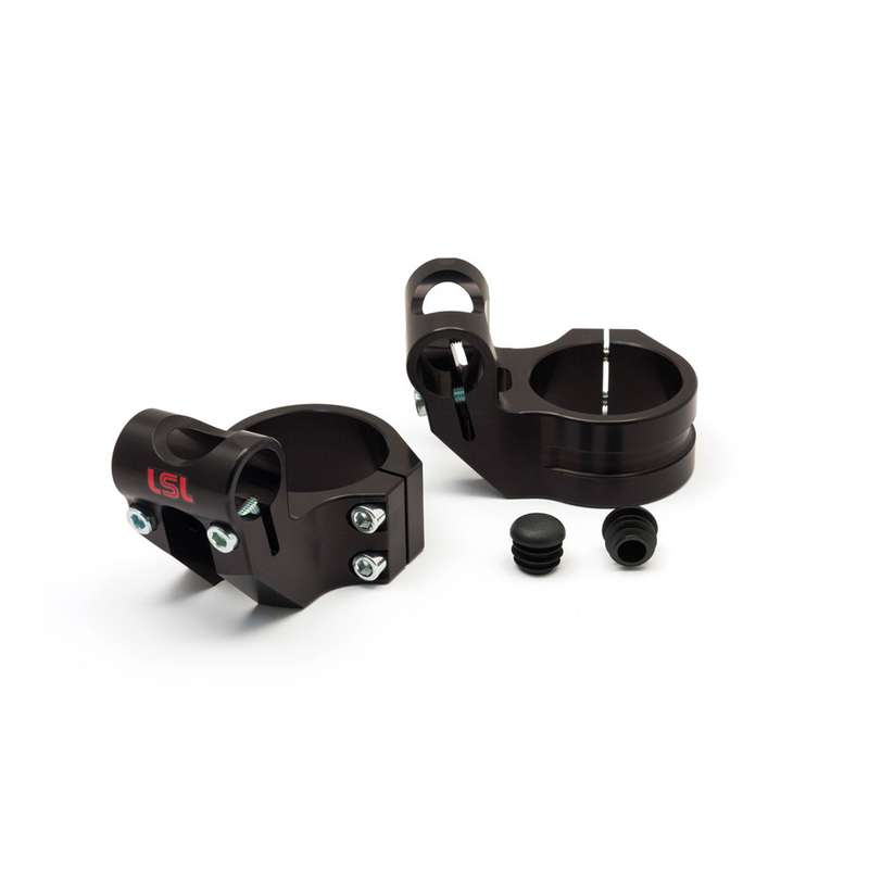 Standrohrschellen *LSL* (Paar) Sport-Match Offset-High aus Alu in SCHWARZ (Anschluss: Ø 41 x H 35mm – 5.0°) inkl CH-Hom.