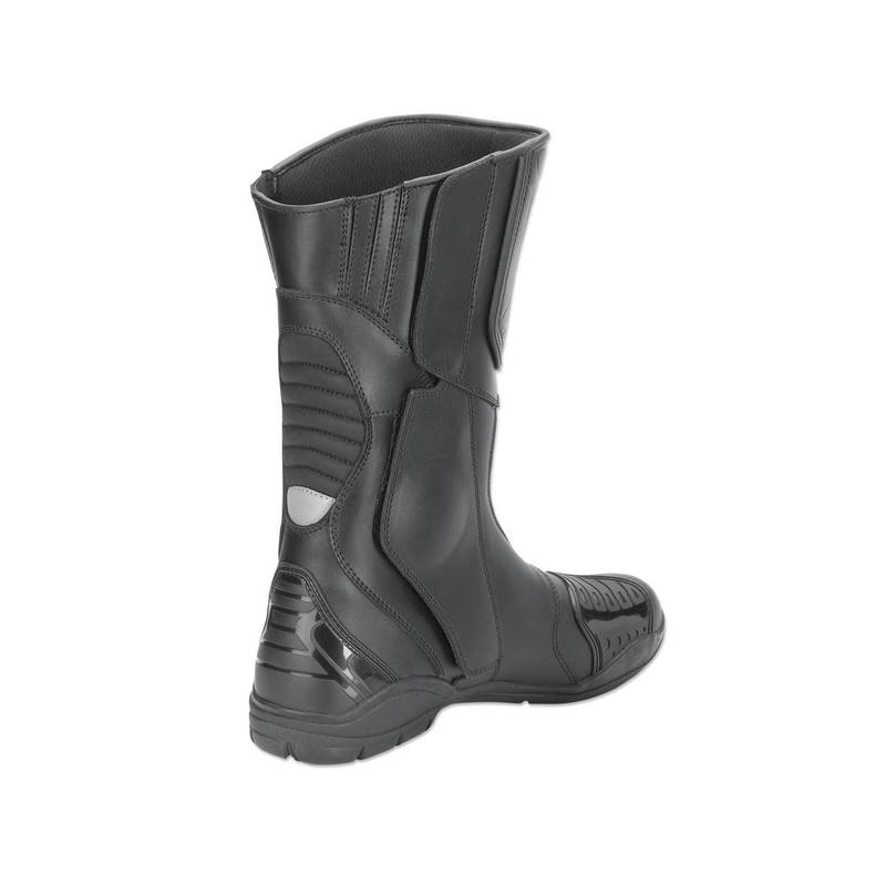 Hochwertiges Leder, wasserdicht, Hypora® Klimamembrane, Schalthebelverstärkung, Reflektoren im Fersenbereich, integrierter Schienbeinschutz, Schafthöhe ca. 31cm