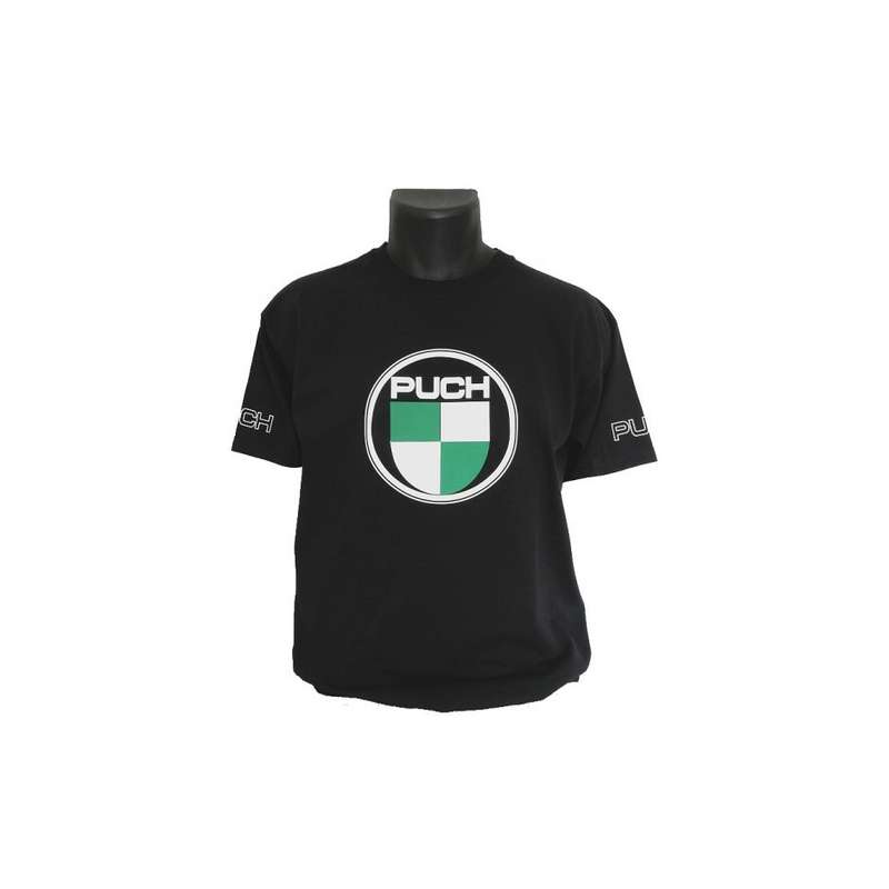 • Schwarz mit Puch- Logo auf der Brust, Text Puch auf beiden Ärmeln