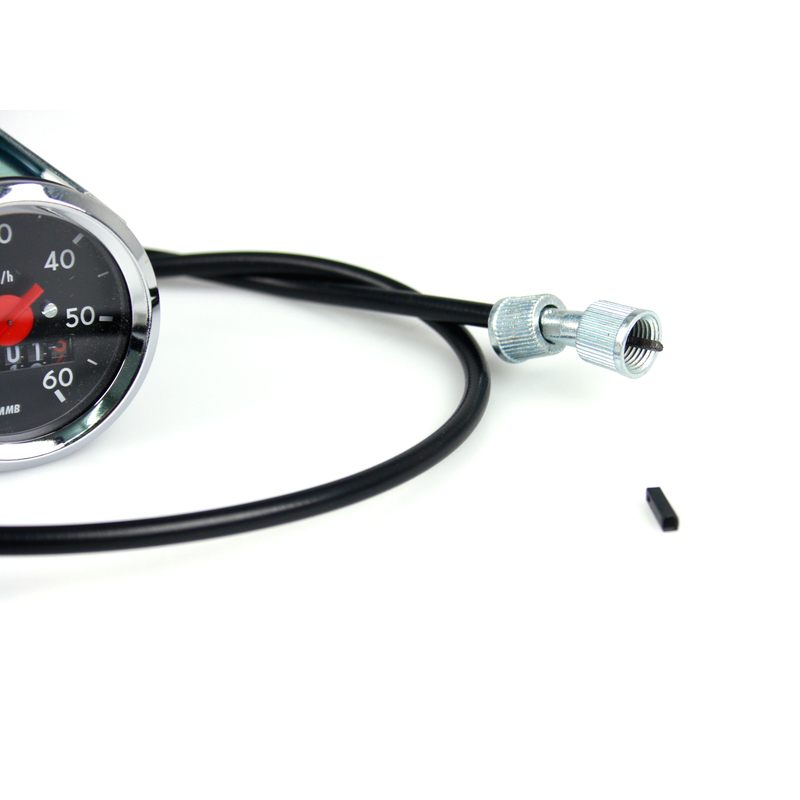 Tacho-Set *MMB* (Typ VDO) Ø 48mm bis 60 km/h (Zifferblatt: schwarz / Ring: chrom) inkl. Saite- & Antrieb zu Piaggio