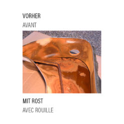 Für die Endbeschichtung ist dies nicht von Bedeutung! Bedenken Sie aber, dass eine vollständige Entrostung auch bedeuten kann, dass kleinere Durchrostungen grösser werden können und dann erst hartgelötet werden müssen.