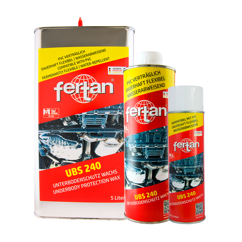 Das Unterbodenschutz-Wachs UBS 240 von FERTAN ist ein hochwertiges sehr widerstandsfähiges, zähelastisches Wachs* mit optimalen Abriebwerten.Der dauerhafte Schutz gegen Steinschlag, Wasser und Korrosion ist einfach zu verarbeiten. Premiumqualität von FERTAN.