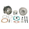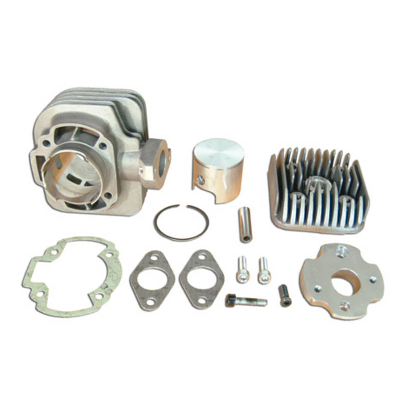 Die Replica Version des High End Zylinders Hebo Manston. Der Alu Zylinder besitzt ebenfalls einen geteilten Auslass und bei den wassergekühlten Modellen einen modularen Zylinderkopf. Die Leistung des Replica setzt im Vergleich zum Italkit schon ein gutes Stück früher ein, was für etwas mehr Drehmoment aber dafür nicht ganz so hohe Leistung sorgt. Die Verarbeitung ist eine Augenweide. Sehr sauber gearbeitete Kanäle und Überströmfenster.